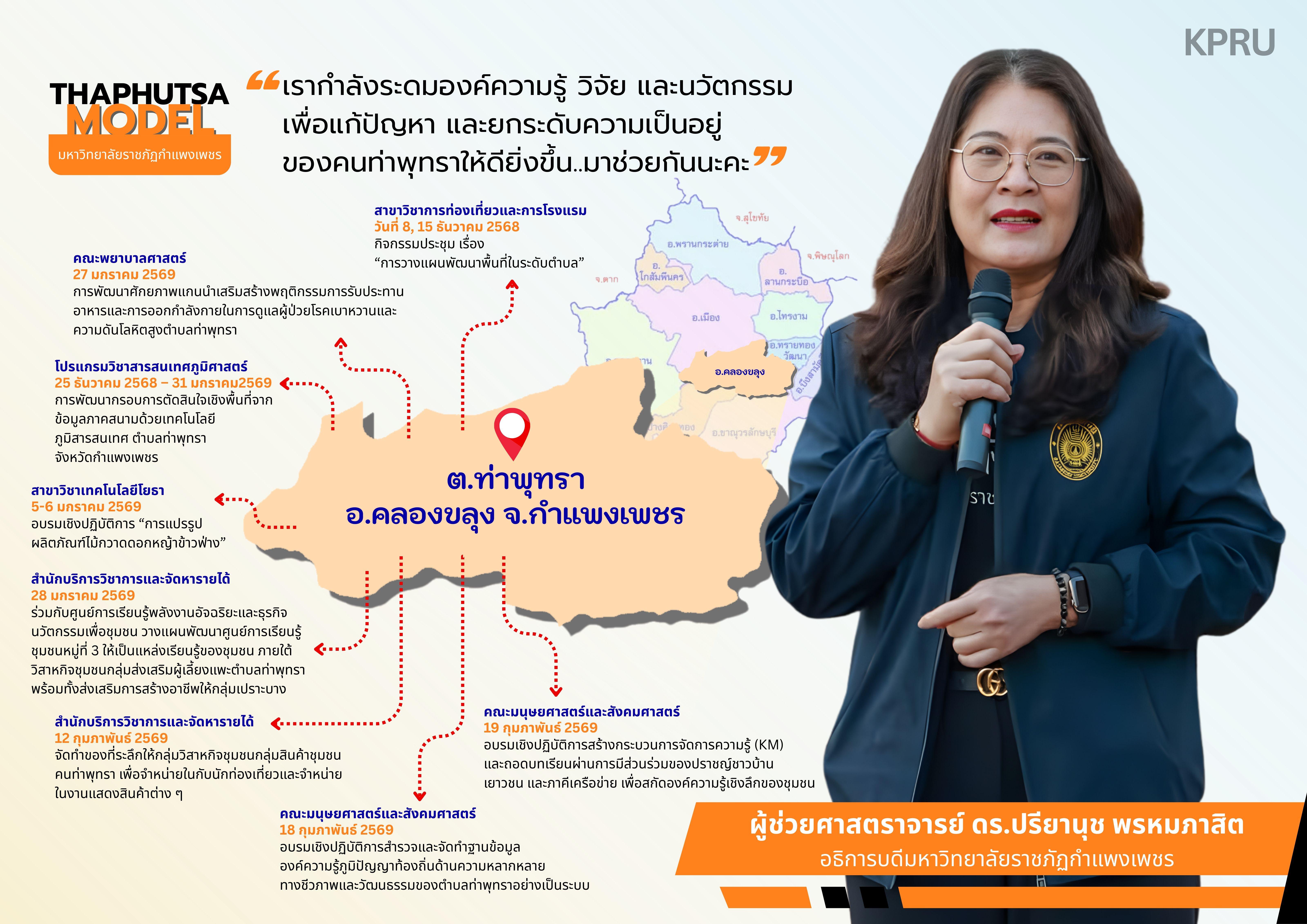 "เรากำลังระดมองค์ความรู้ วิจัย และนวัตกรรม เพื่อแก้ปัญหา และยกระดับความเป็นอยู่ของคนท่าพุทราให้ดียิ่งขึ้น..มาช่วยกันนะคะ"