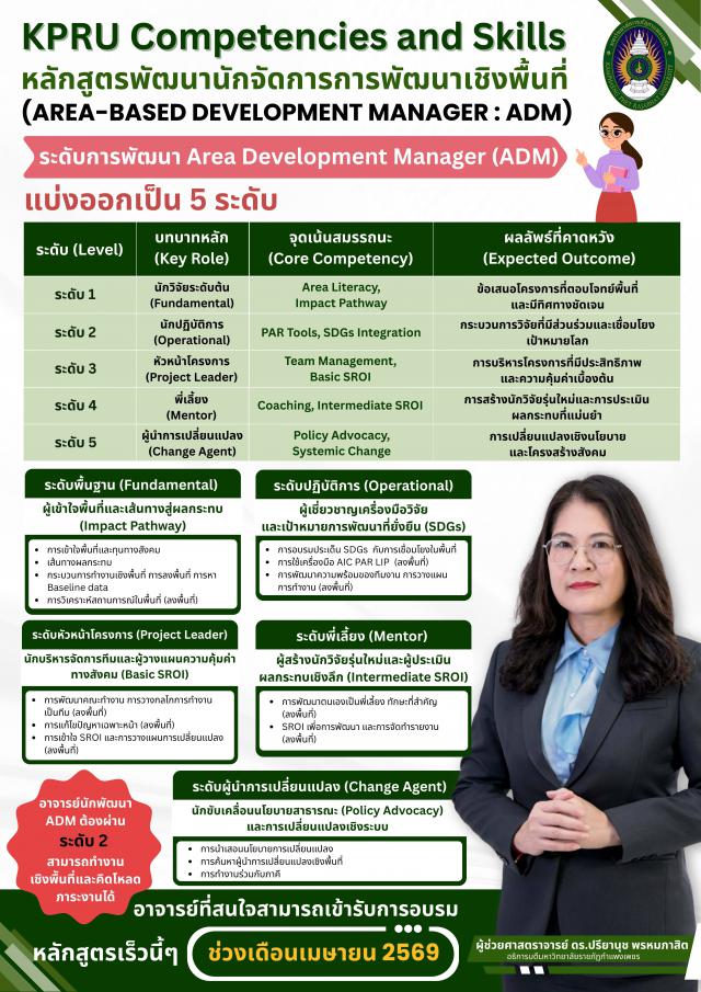KPRU Competencies and Skills หลักสูตรพัฒนานักจัดการการพัฒนาเชิงพื้นที่ (Area-based Development Manager : ADM)
