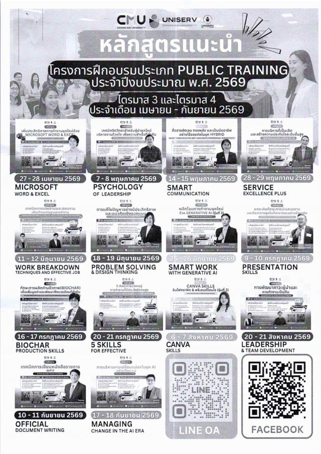 โครงการฝึกอบรมประเภท PUBLIC TRAINING ประจำปีงบประมาณ พ.ศ. 2569