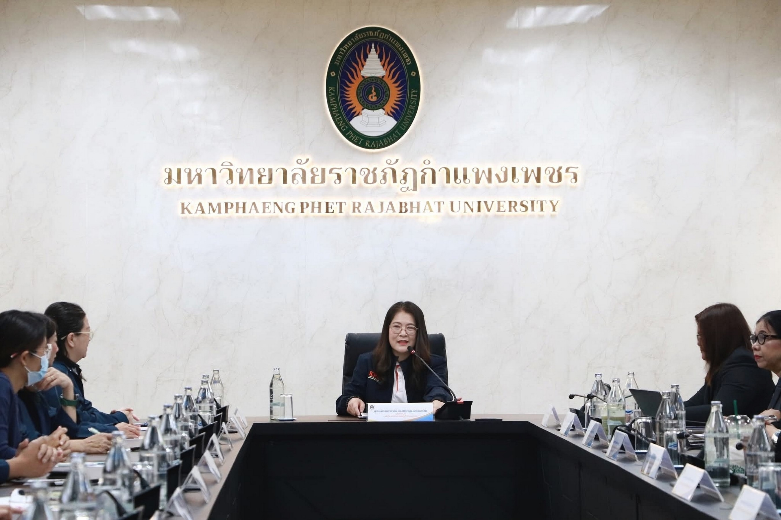 ผศ.ดร.ปรียานุช พรหมภาสิต อธิการบดีมหาวิทยาลัยราชภัฏกำแพงเพชร ให้การต้อนรับคณะศึกษาดูงานจาก มหาวิทยาลัยราชภัฏกาญจนบุรี เพื่อร่วม แลกเปลี่ยนเรียนรู้การขับเคลื่อนโมเดลขจัดความยากจน “ท่าพุทราโมเดล” ภายใต้ แผนงานยุทธศาสตร์มหาวิทยาลัยราชภัฏเพื่อการพัฒนาท้องถิ่น ณ ห้องประชุมรวงผึ้ง ชั้น 8 อาคารเรียนรวมและอำนวยการ (อาคาร 14) มหาวิทยาลัยราชภัฏกำแพงเพชร