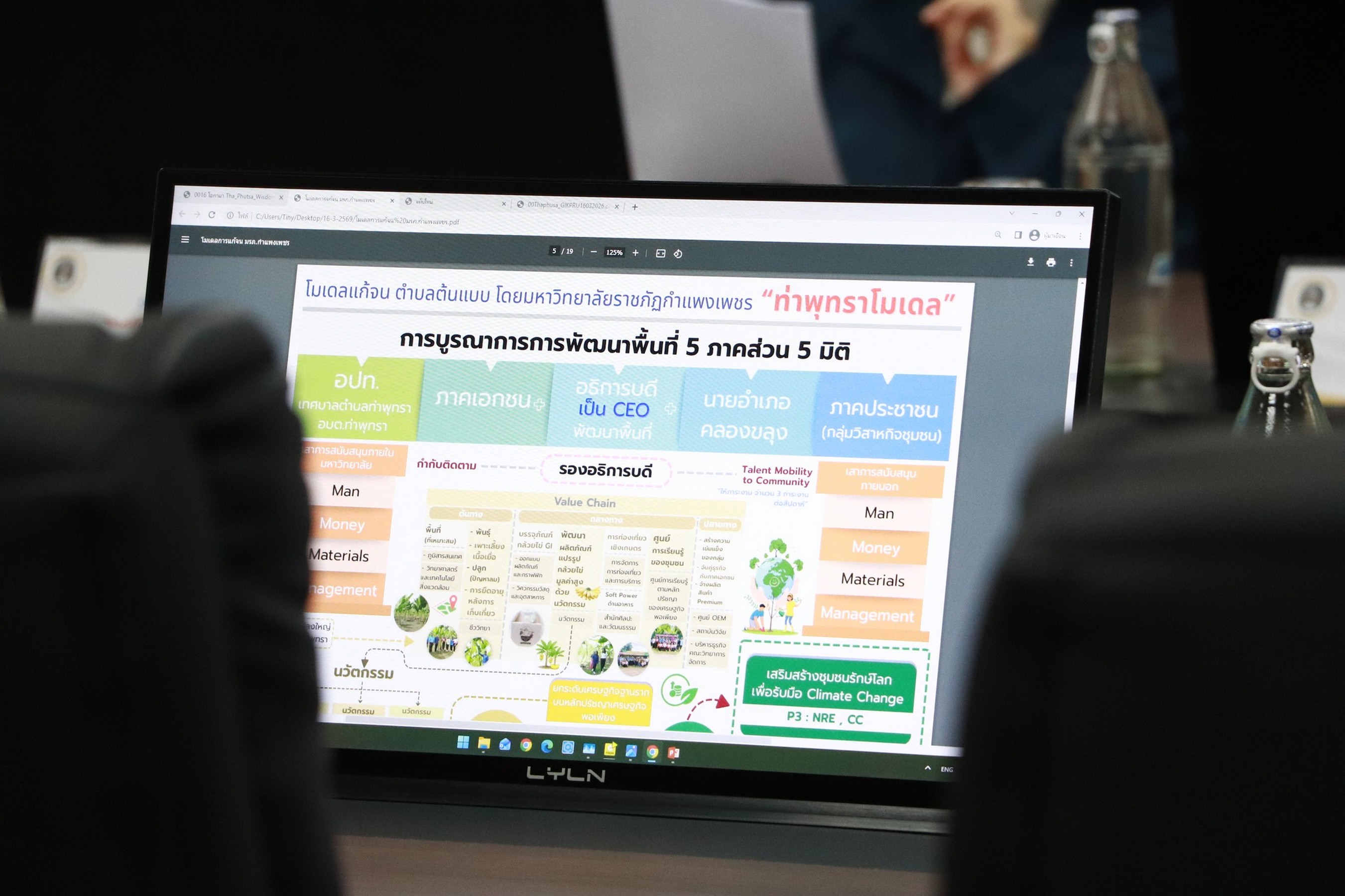 โอกาสนี้ ผศ.ดร.ชญาดา กลิ่นจันทร์ รองอธิการบดีฝ่ายวิจัยและบริการวิชาการ ได้นำเสนอแนวทางการขับเคลื่อน “ท่าพุทราโมเดล” จากนั้นเป็นการ แลกเปลี่ยนองค์ความรู้ด้านการพัฒนาท้องถิ่น ระหว่าง มหาวิทยาลัยราชภัฏกำแพงเพชร และ มหาวิทยาลัยราชภัฏกาญจนบุรี